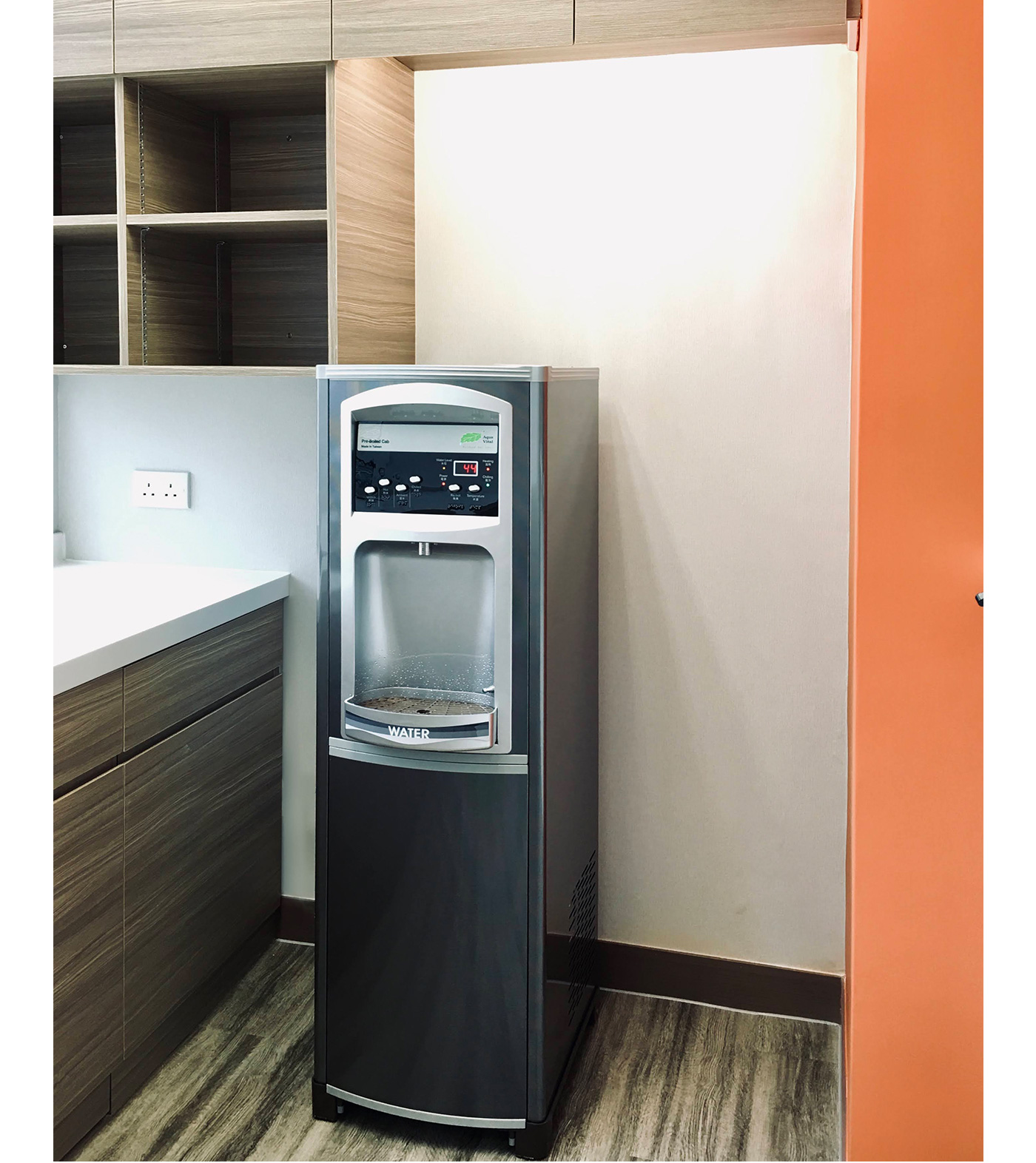 - 專利熱交換技術:將預先沸騰的水急速冷卻後才輸到冰、溫水缸
